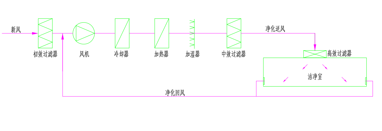 凈化空調(diào)系統(tǒng)空氣處理基本流程圖