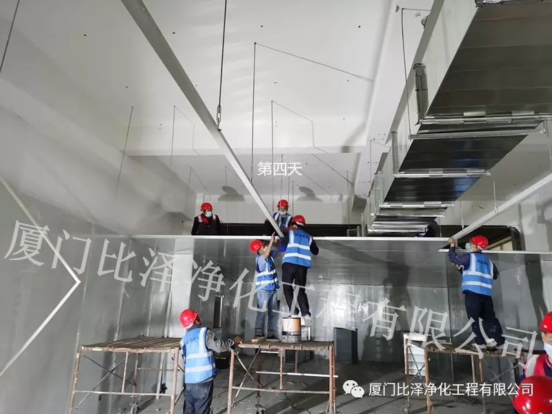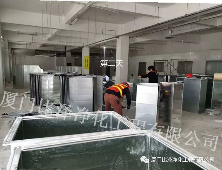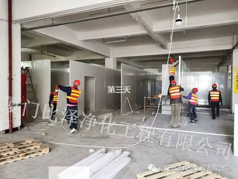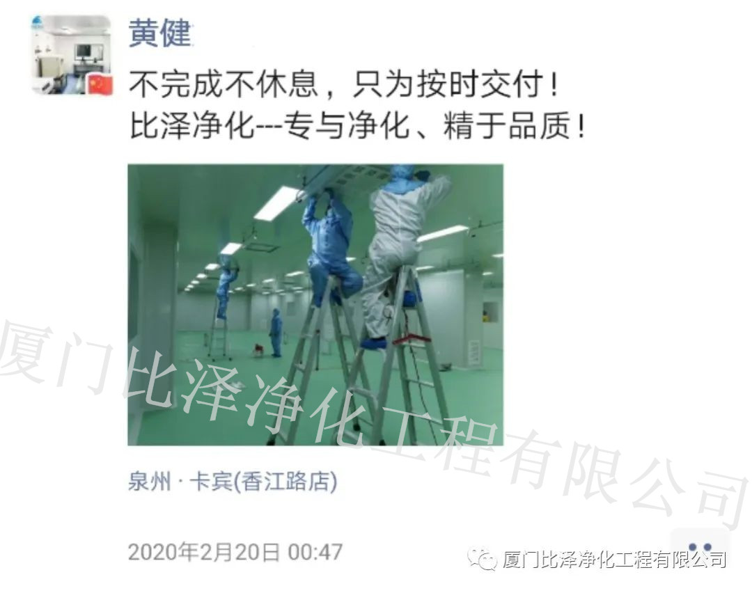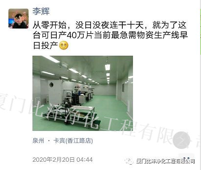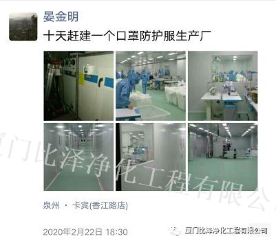 比澤凈化承建的石獅卡賓應(yīng)急改建口罩廠項(xiàng)目10號(hào)開工。項(xiàng)目建筑面積一千多平方米,工期10天,在2月20日提前交付使用!