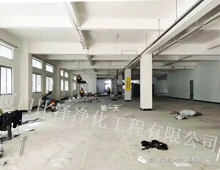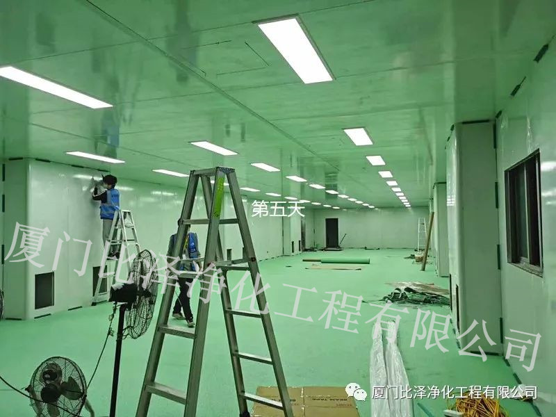 第六天:一千多平的十萬(wàn)凈化車間,完成主體裝修、凈化送風(fēng)系統(tǒng)、照明配電、PVC地板鋪設(shè)進(jìn)行中,開始陸續(xù)收尾!